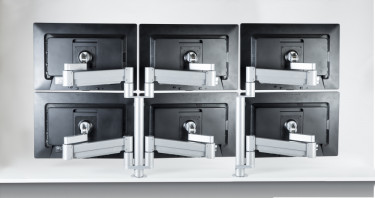 Artikkel nr. 640016-1Skjermarm som frigjør bordplass. Solid og rent design. Løsningen kan bygges om fra 6 og ned til 4 eller 3 skjermsløsning. Spesielt beregnet for overvåkningsplasser.