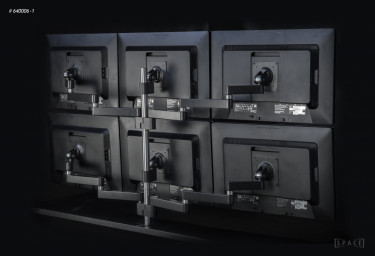 Artikkel nr. 640016-8Skjermarm som frigjør bordplass. Solid og rent design. Løsningen kan bygges om fra 6 og ned til 4 eller 3 skjermsløsning. Spesielt beregnet for overvåkningsplasser.